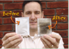 "While I slept, that small pad was really working! It painlessly sucked toxins out of my body. My clean white bad turned nearly black! Take a look for yourself. Here's the pad BEFORE I put it on my foot and here it is the next morning. That black stuff is moisture and toxins that came out of my body in just one night!!"